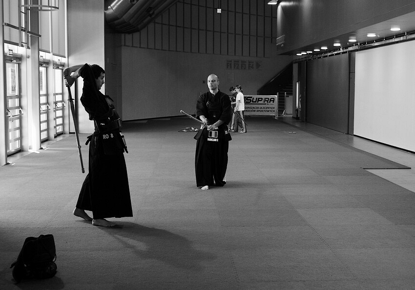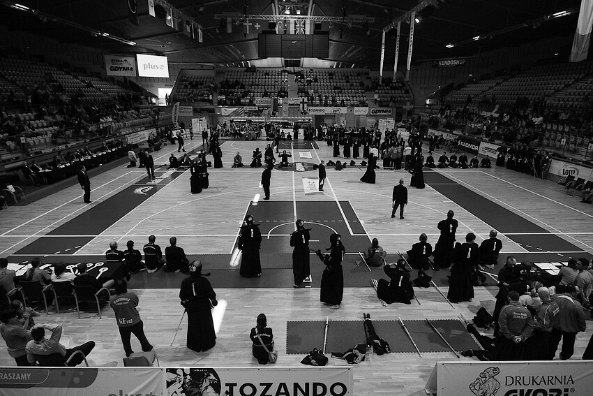 Byłem kiedyś w Gdyni na Mistrzostwach Europy w Kendo. Wydaje mi się, że zdjęcia zrobione już dawno bo było to w maju 2011 ciągle zachowały swoją moc. Tak pisałem o tym wtedy: " Przyznam, że zawody zrobiły na mnie spore wrażenie. Kiedy tak przypatrywałem się zawodnikom moją uwagę zwracały przede wszystkim emocje. Widać było, że w kendo ważne jest zdobycie psychicznej przewagi nad przeciwnikiem jeszcze przed walką lub w pierwszych chwilach jej trwania. Postawa, okrzyki, kontrola ruchu - to wszystko jest ważne. I ciągłe panowanie nad sobą w trakcie walki. Z samego ruchu zawodników było widać jak mocno starają się zapanować nad emocjami swoimi i przeciwnika. Niesamowite dla mnie było też to jak w ułamku sekundy zawodnicy potrafią eksplodować nieprawdopodobną energią, jak ich ruch w momencie ataku jest szybki i precyzyjny. Fajna sprawa ćwiczyć takie kendo."