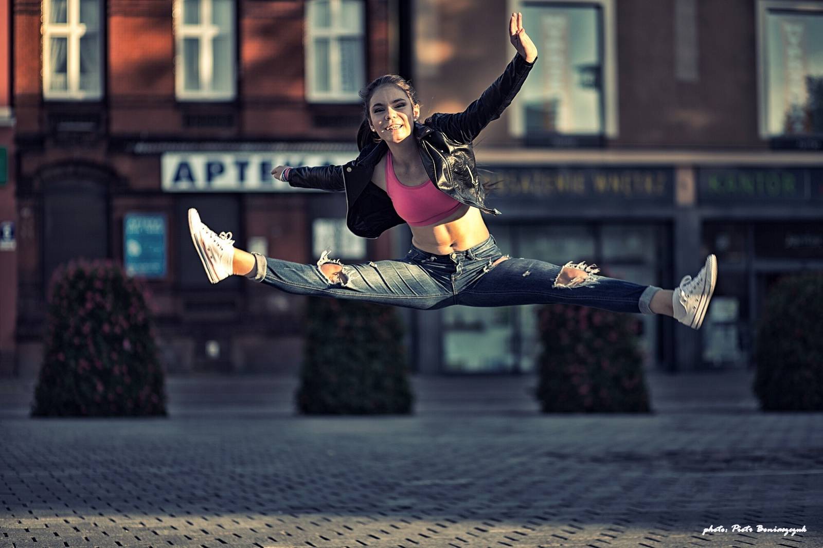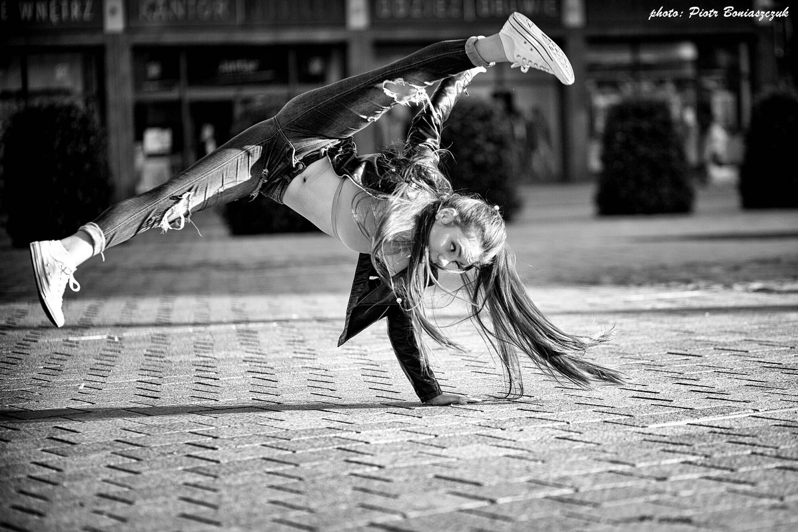 Jakiś czas temu zrobiłem taką miejsko-akrobatyczno-taneczną sesję z wtedy Asią a teraz Joanną (dzięki za pozwolenie zamieszczenia zdjęć na stronie)! To była niespodzianka - takie małe zaskoczenie. Asia wcale nie przyjechała na Plac Pokoju by robić zdjęcia - to był spisek jej mamy Agnieszki i mój XD. Ja nie żałuję, Agnieszce też zdjęcia wciąż się podobają a i ja nadal jestem z tej "sesji" zadowolony - no to chyba nie wyszło źle?